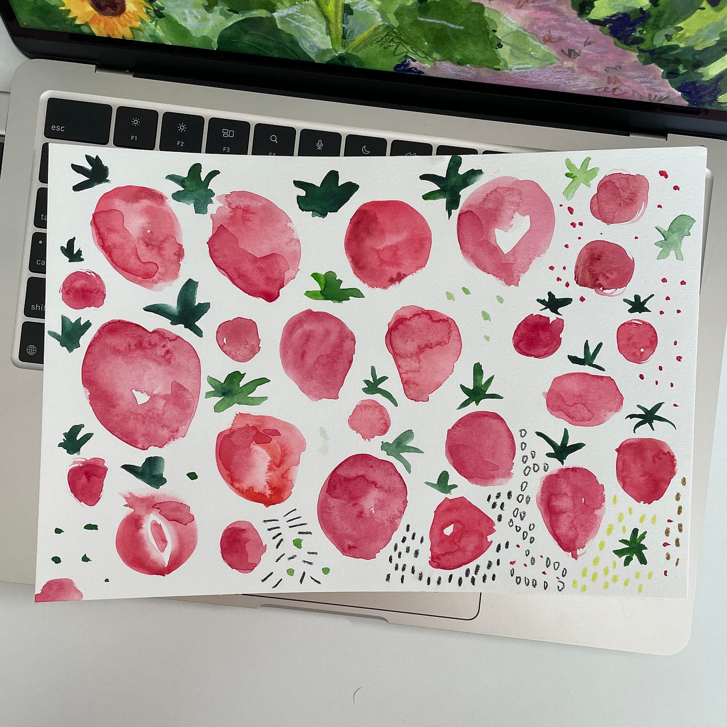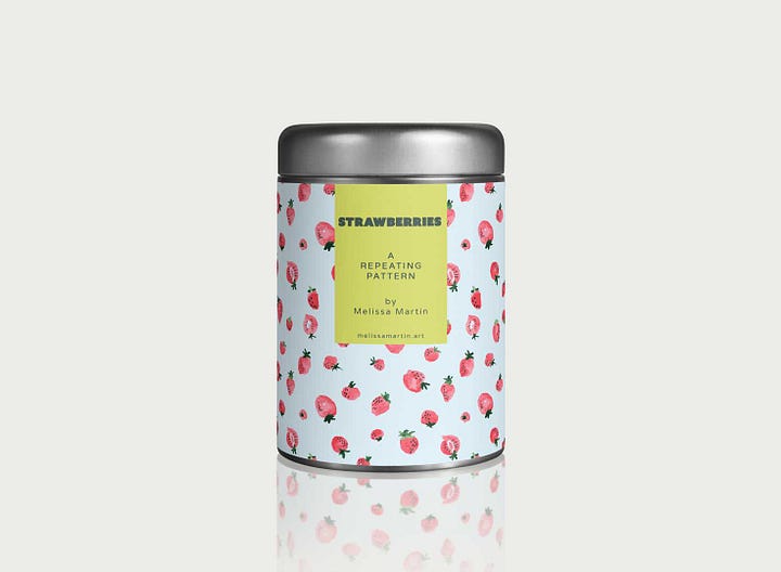 It’s been a while since I made a repeating pattern. I really enjoy the process of making shapes with washes of watercolour, then doing details using colour pencil, but disconnected and separate from the watercolour. And then I scan them, turn them into vectors, and play around until I have a pattern.
