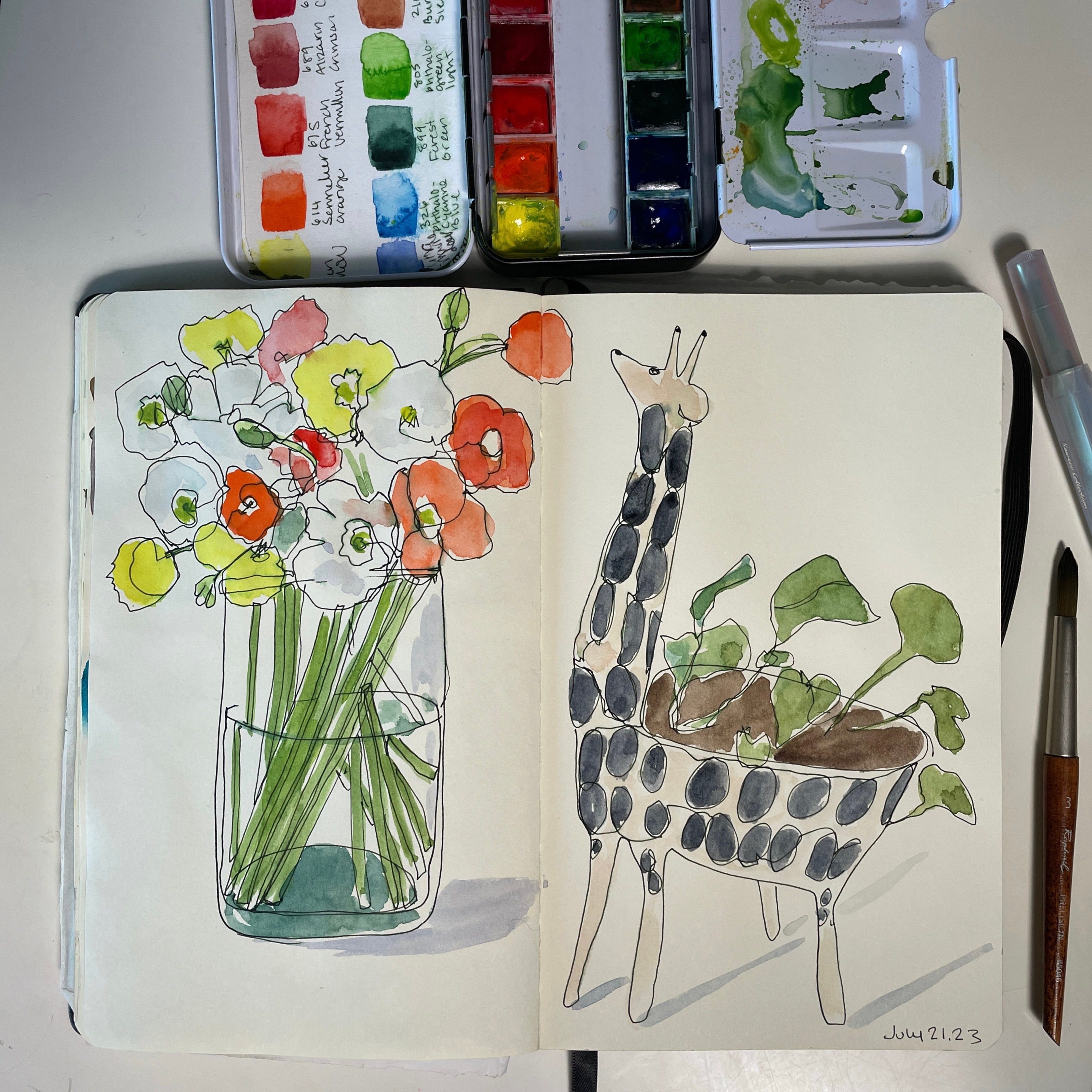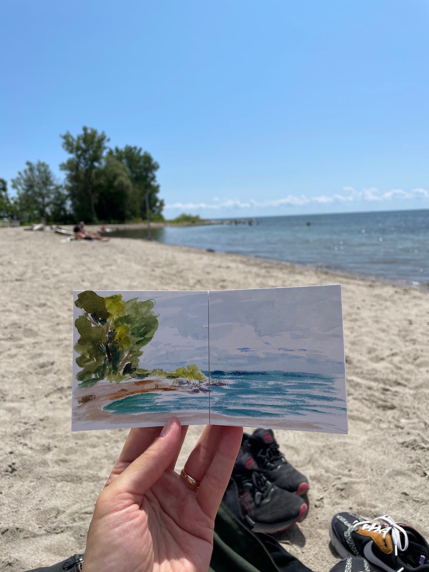 While Ray and Simon were playing fetch in the water I sat down for a quick watercolour sketch in my little sketchbook:
