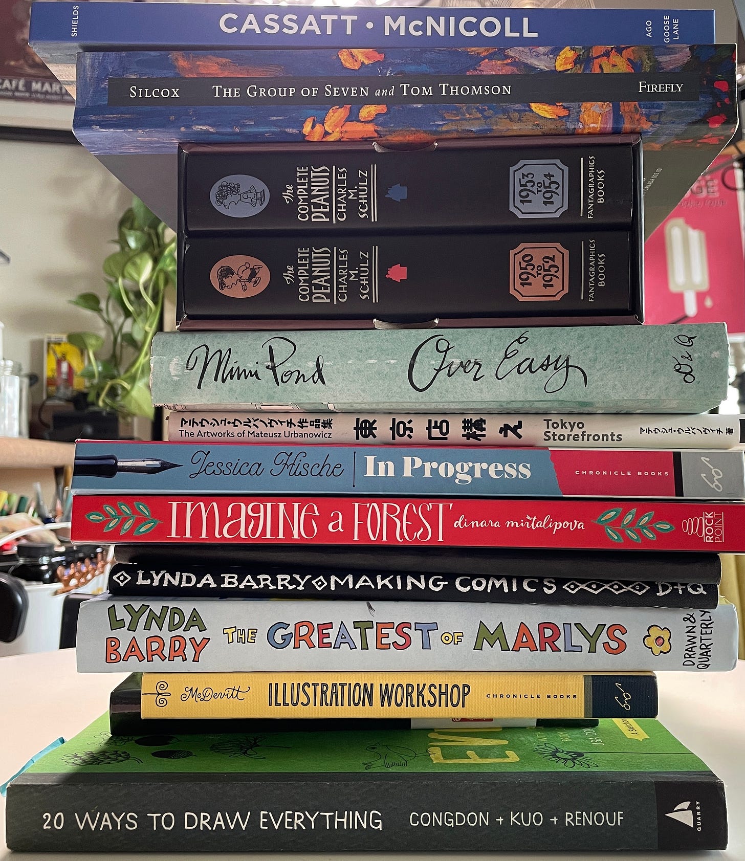 I did not make any art this day (aside from my self portrait) as I filmed and edited another video for YouTube about my fav art books.
