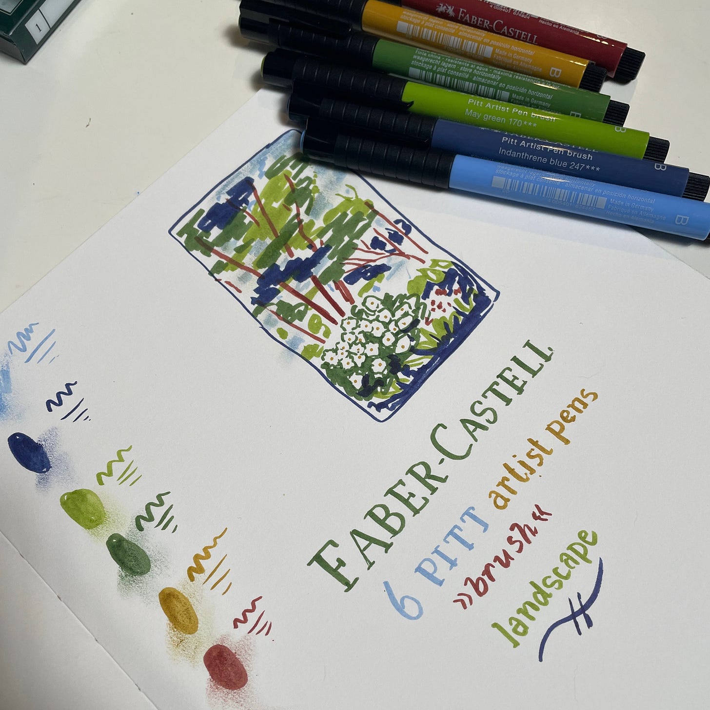 Oh look 👀, new art supplies! I ordered a little “landscape” collection of Faber-Castell Pitt brush markers, thinking they’d be great to take outside to use in place of gouache as an underpainting.