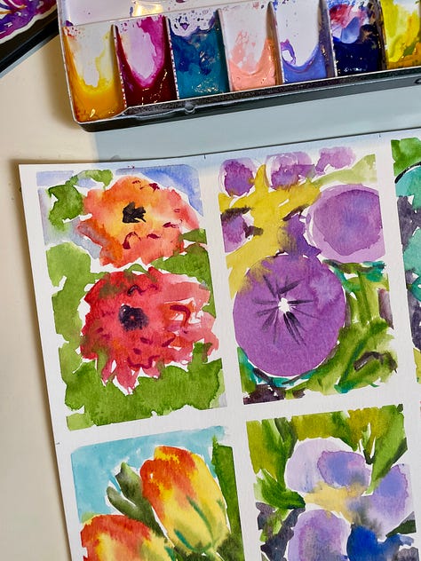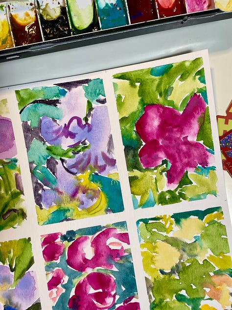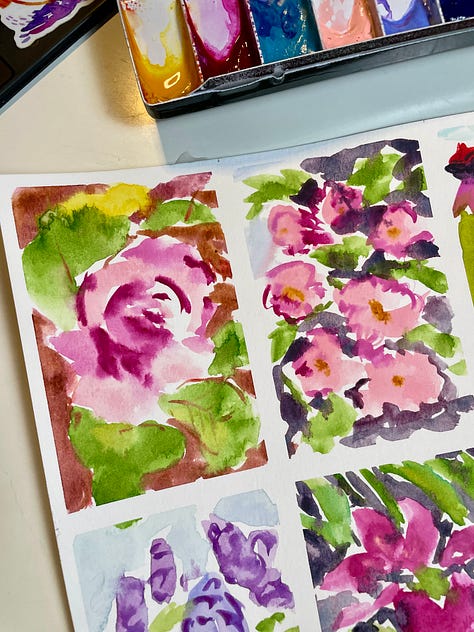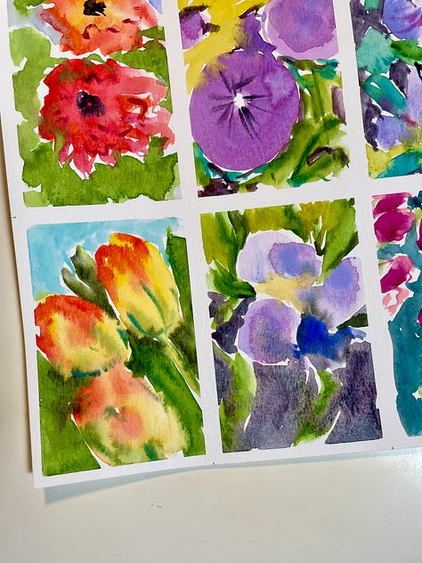 Yesterday when I was gathering references for our June 1 pop-up I saw what I was striving for in the work of Henri-Edmond Cross, his mosaic watercolours were like my vision come to life!