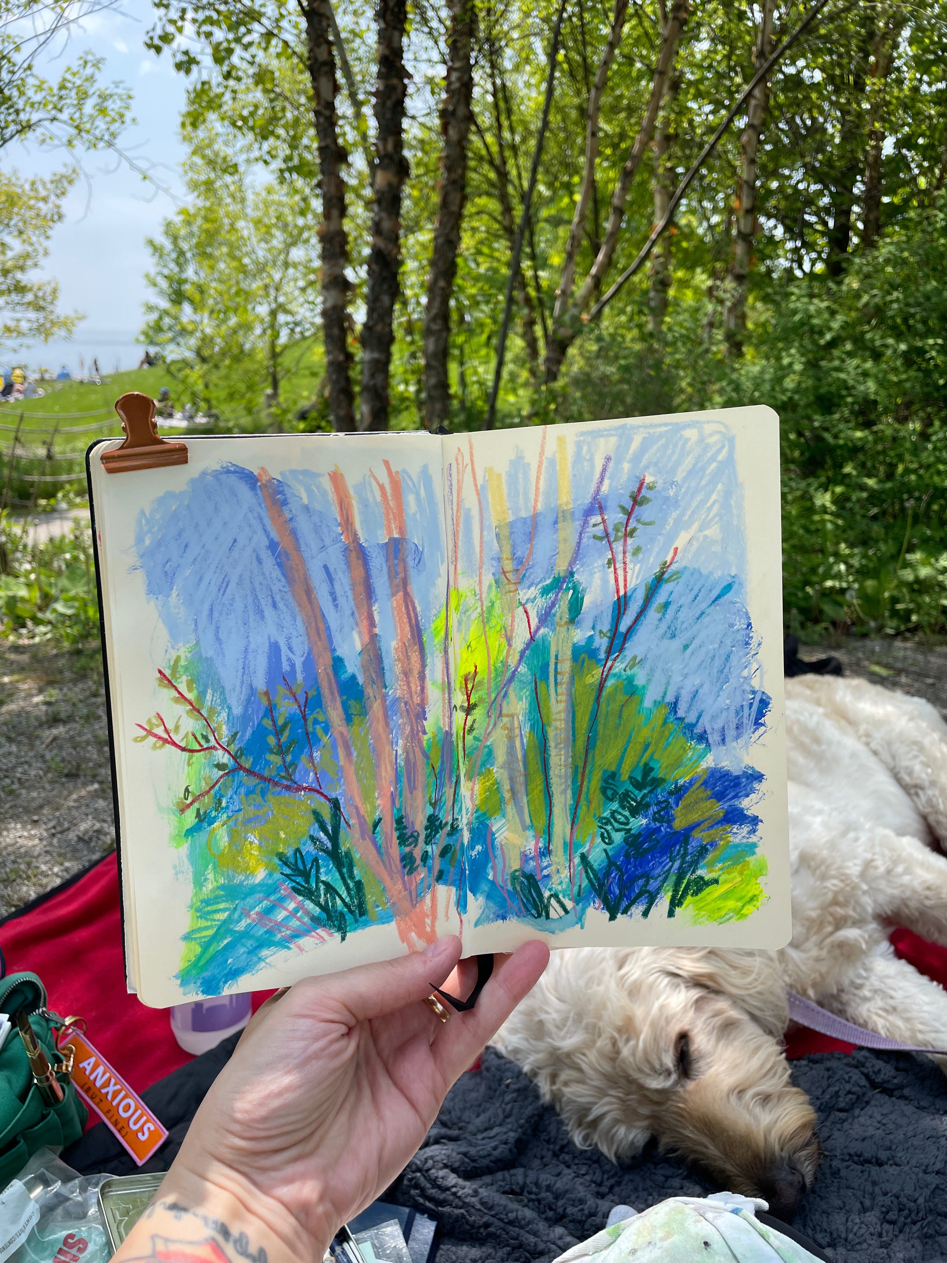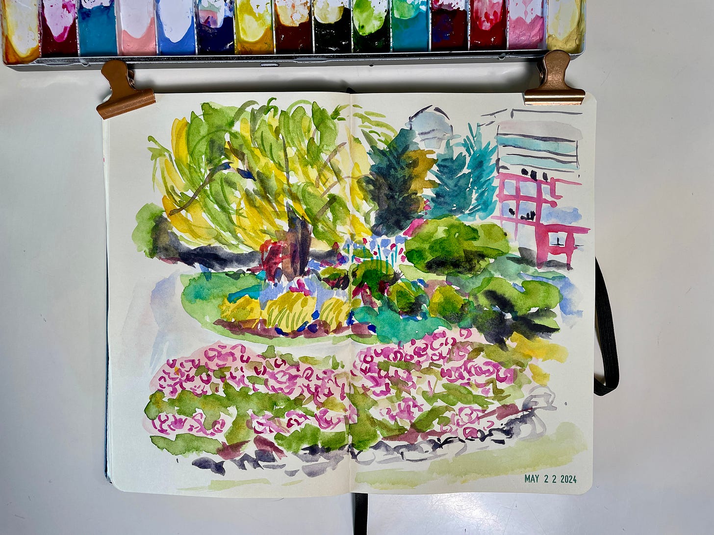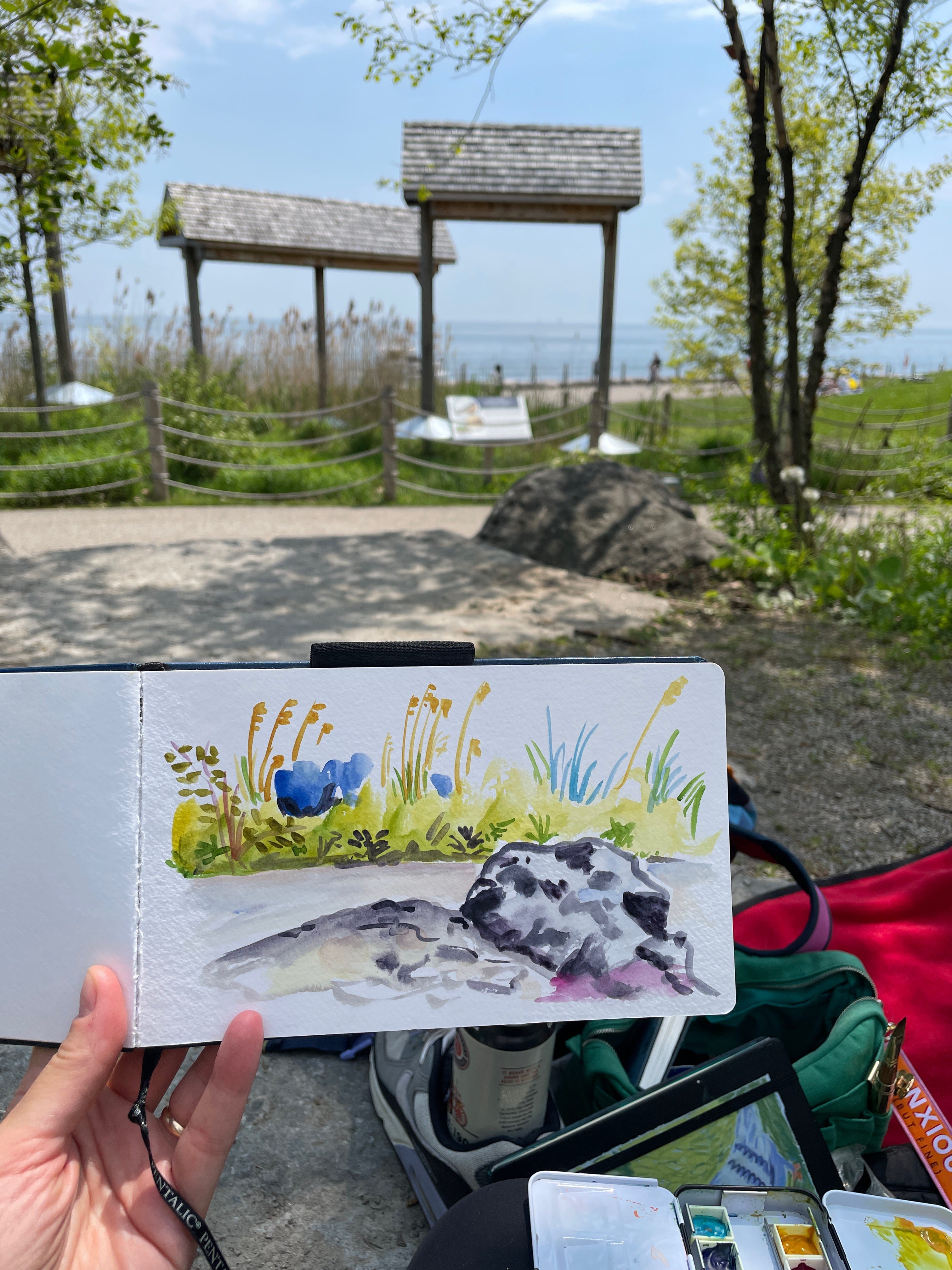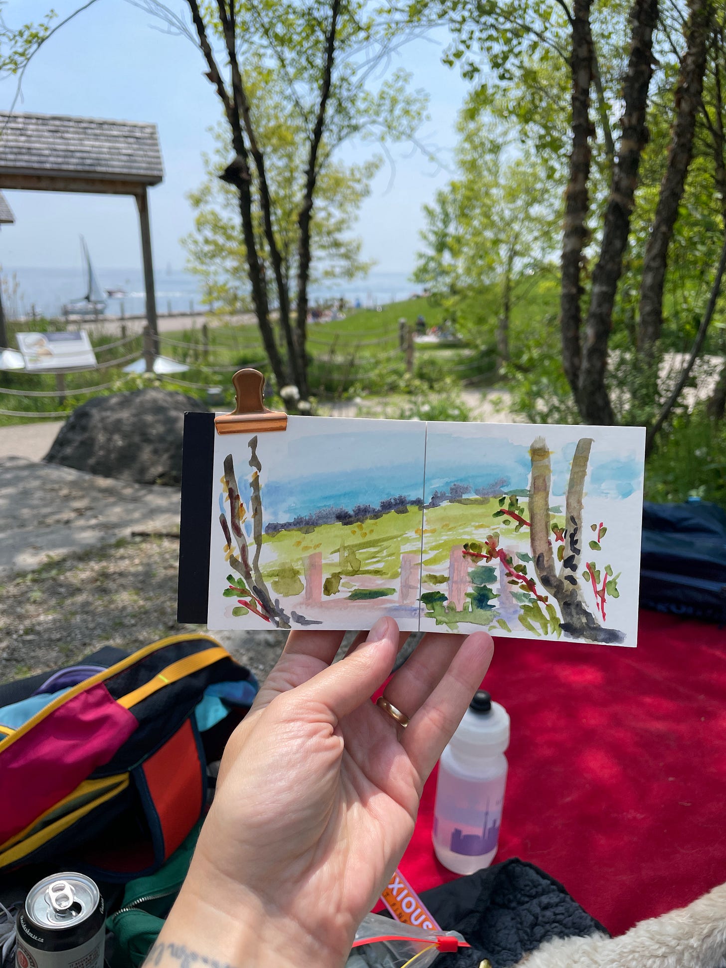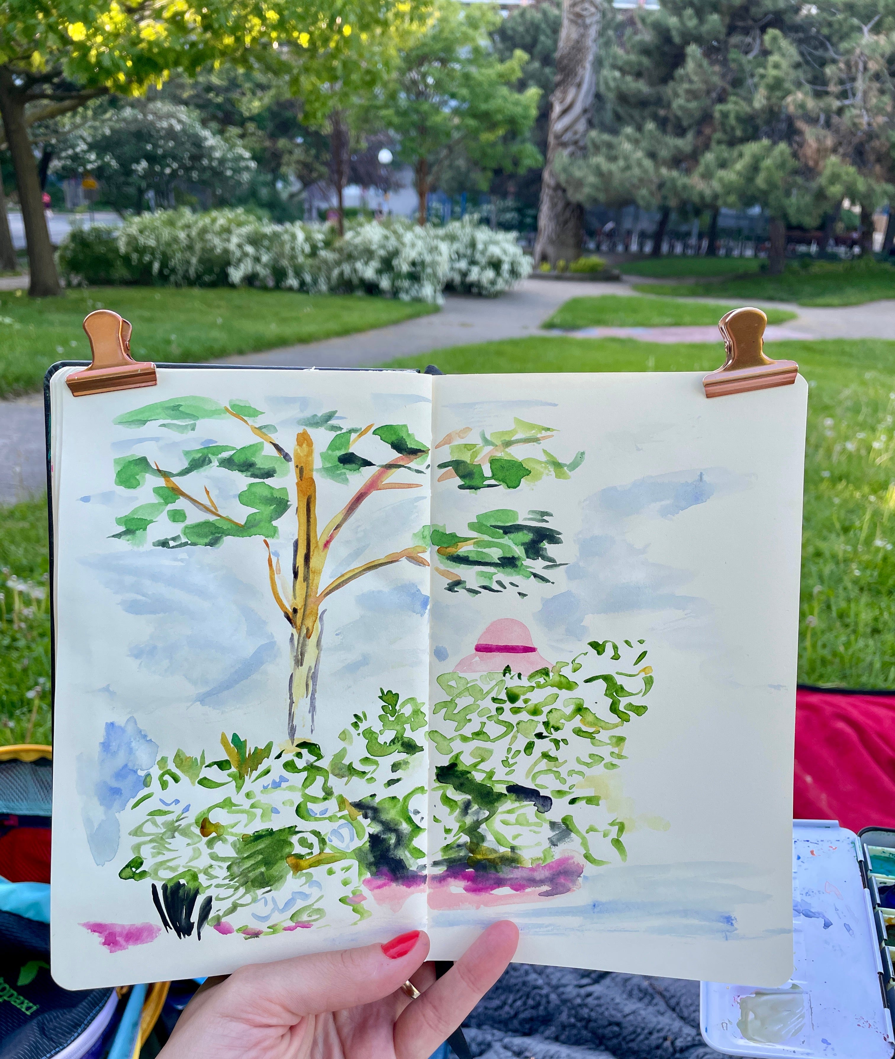 This is from Monday’s outing, where I packed up my supplies and then headed to Trillium Park to fill some sketchbook pages!