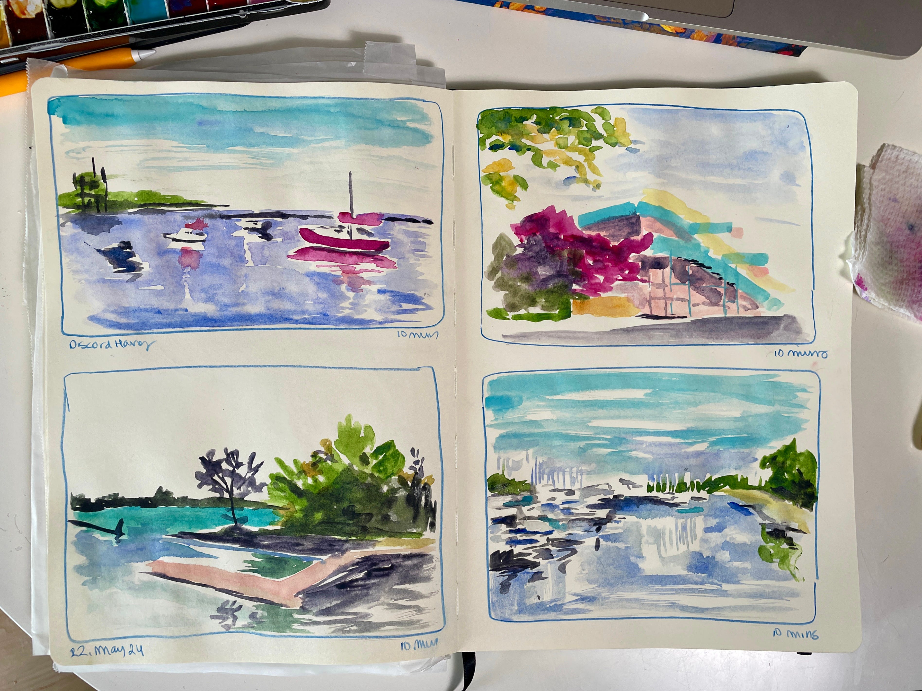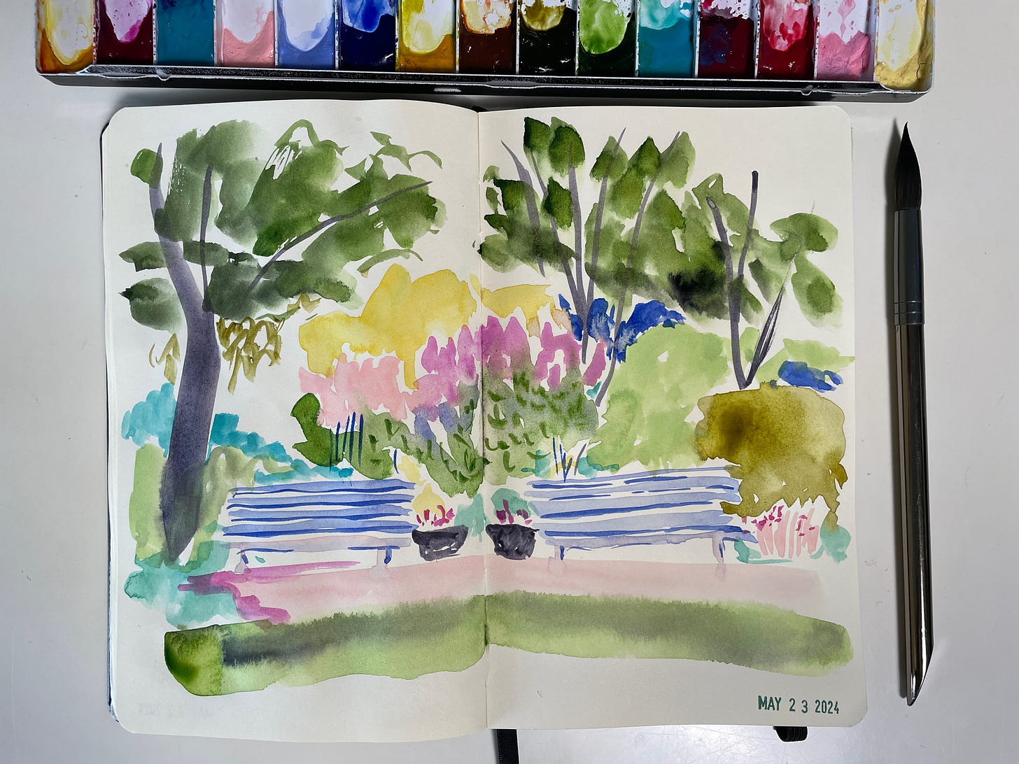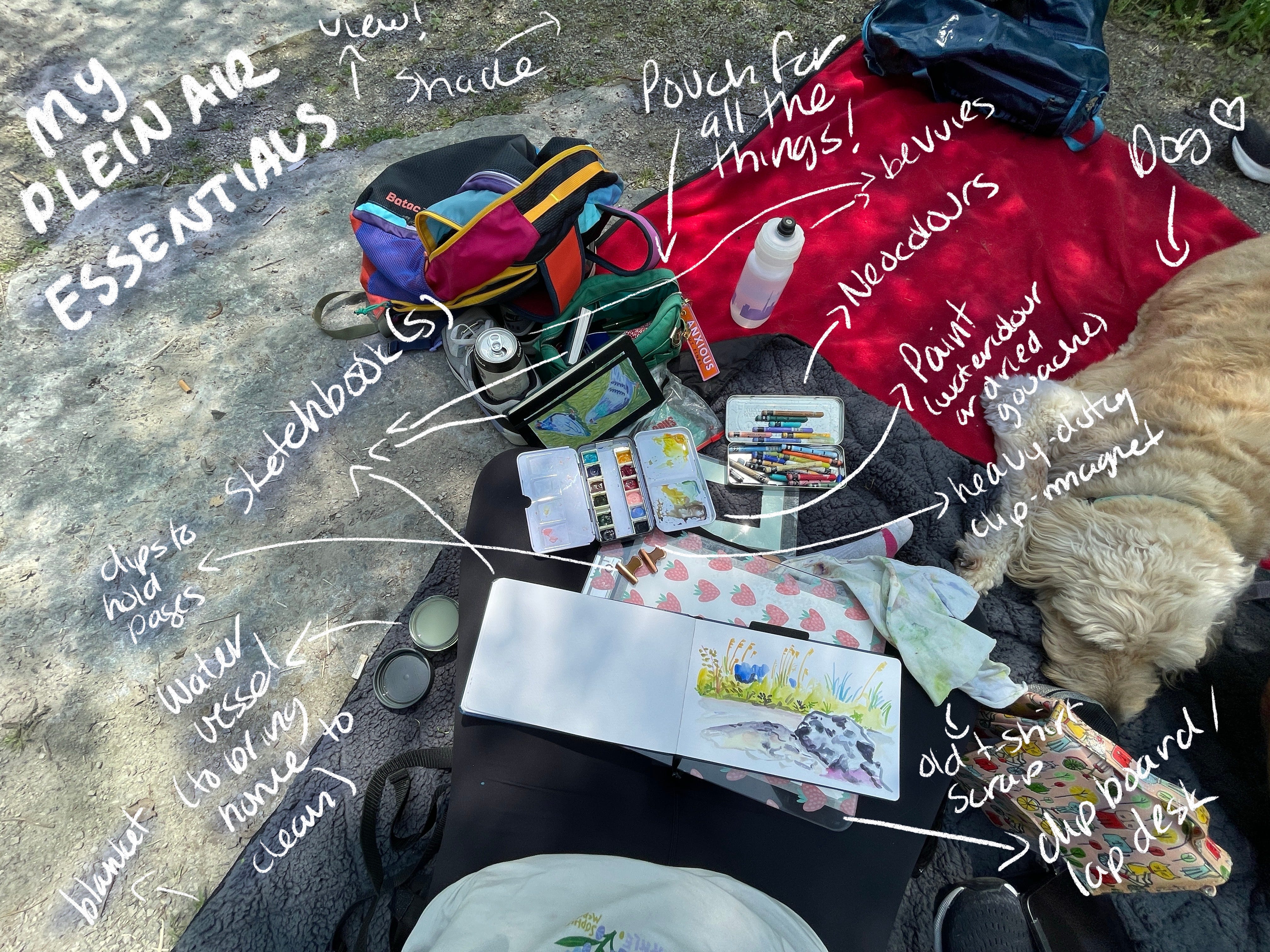 Kristin Hastings asked if I had a video with my plein air kit over the AHP discord after I shared this post from Bill Russell with so many great reasons to take your sketchbook outside. I did not have such a video so that was also on the agenda for the day.