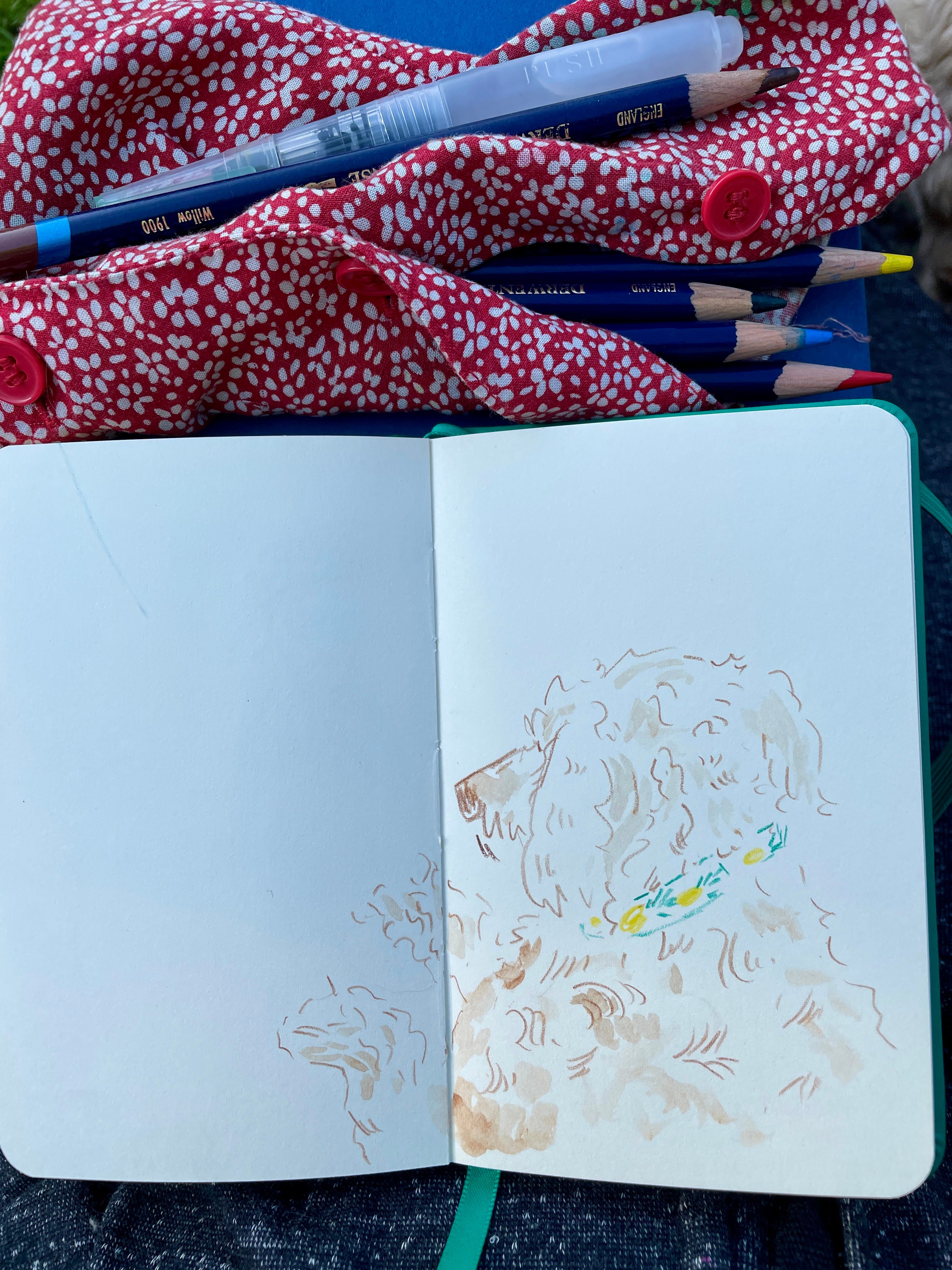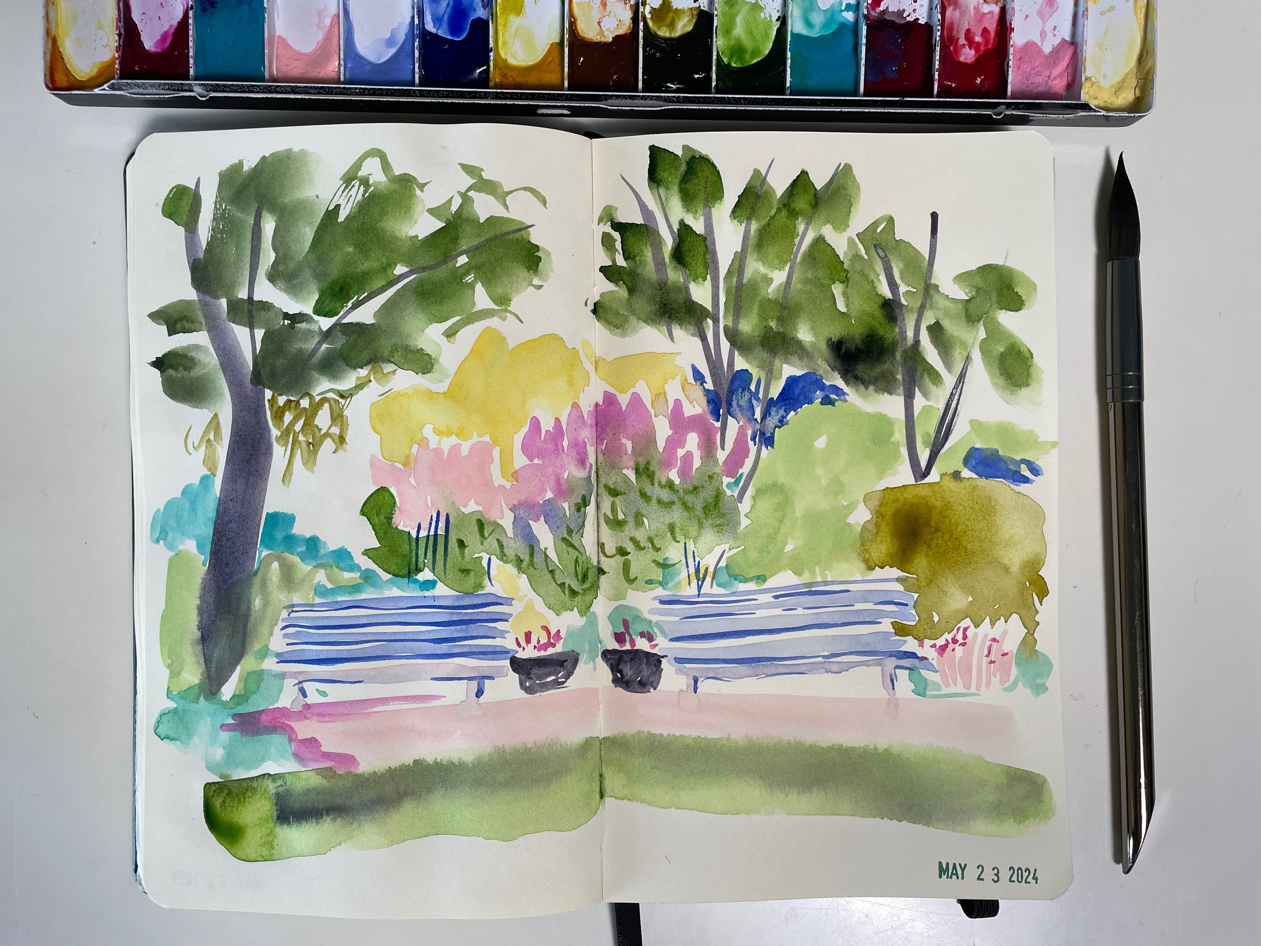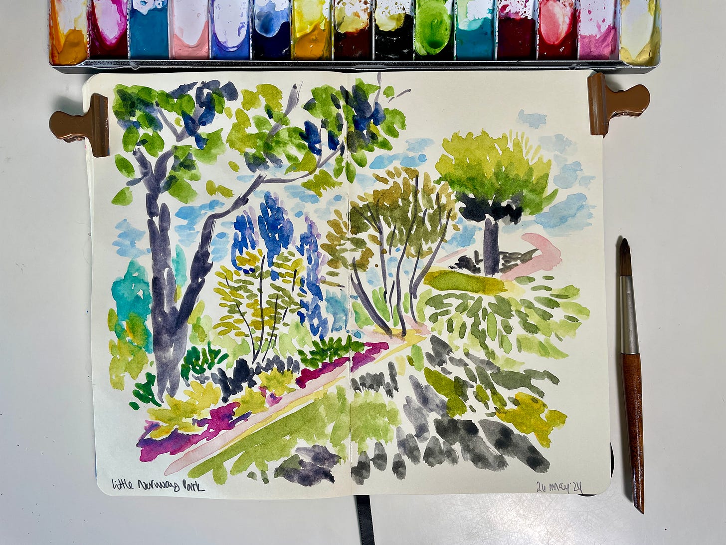 I knew we were going to sit in the park but I wanted to do this piece as a warm up, wanting to take this loose, what I call in my head “drawing with watercolour”, outside with me.
