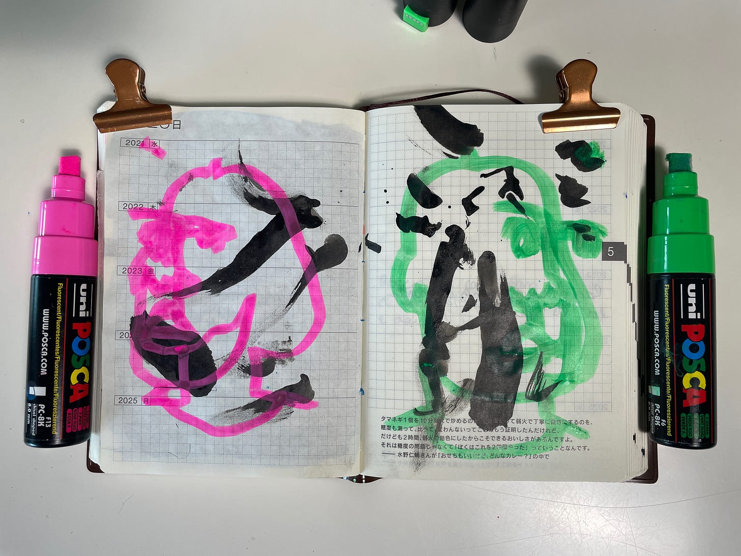 I decided to grab my two Uber-chunky posca markers and, holding one in each hand, did blind contour selfies 🫣